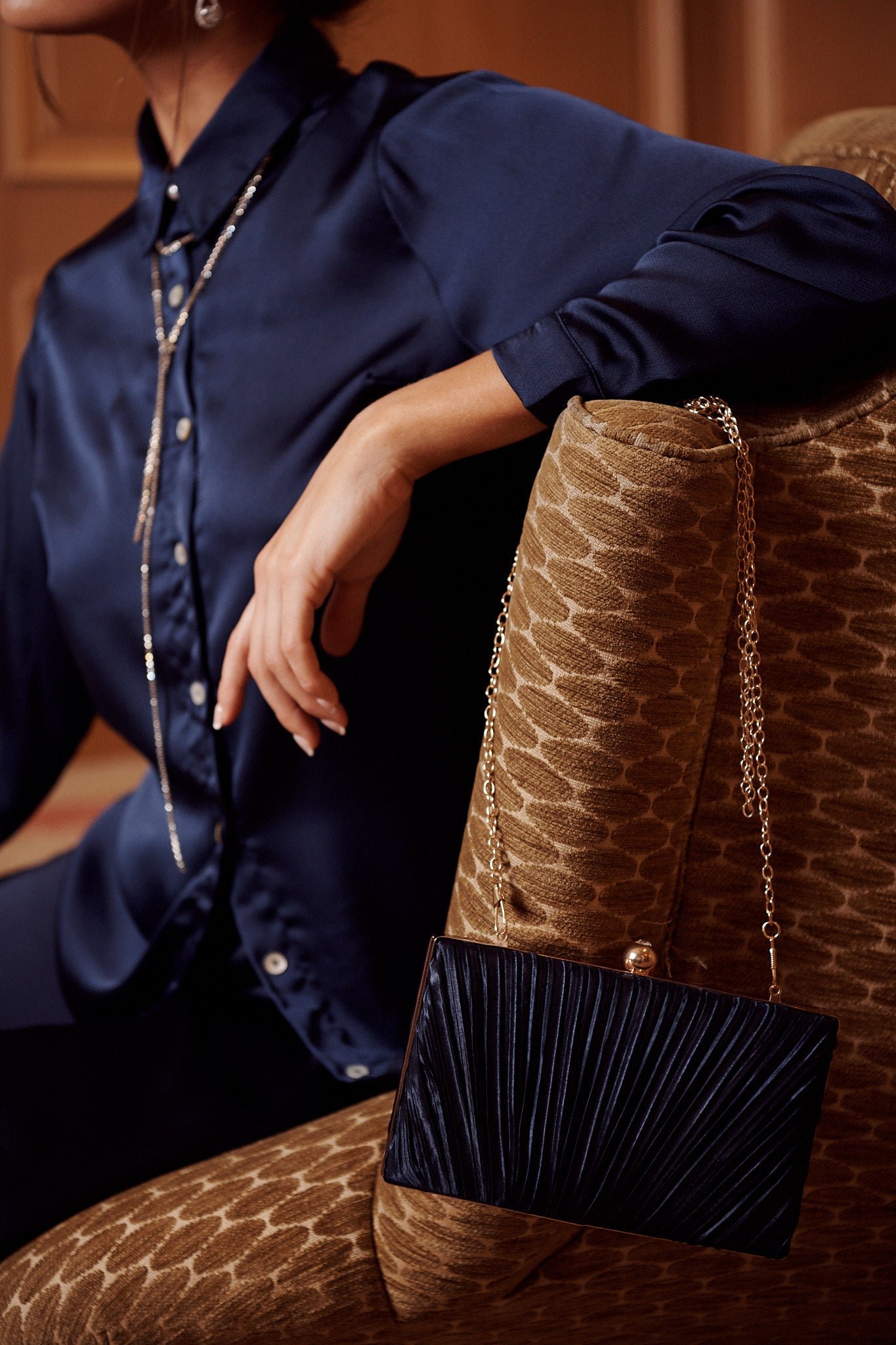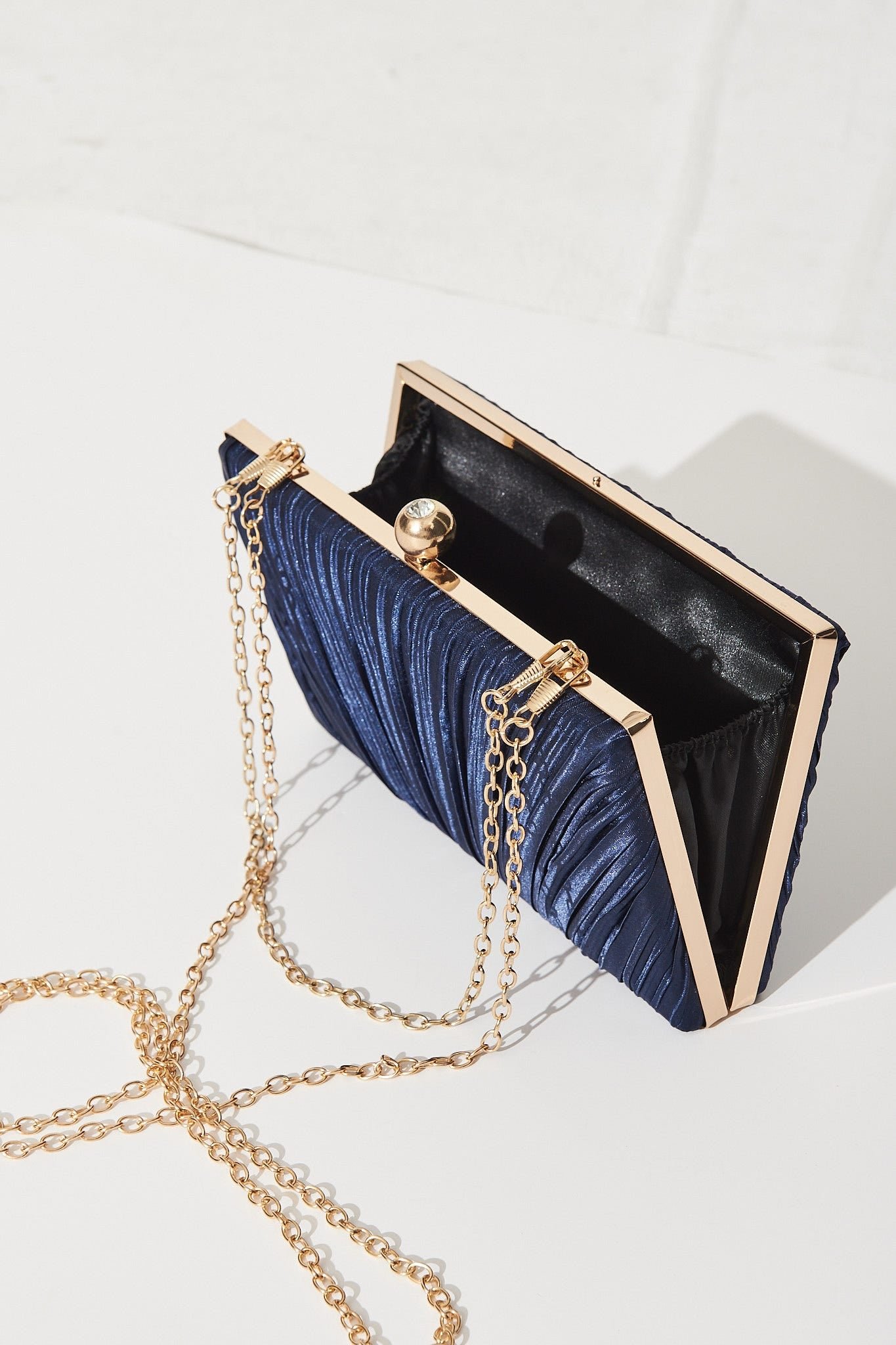 Add a touch of sparkle to your next outfit with our Clutch Bag. This super cute style is both functional and stylish, with its detachable gold chain strap & stunning diamante closure.
