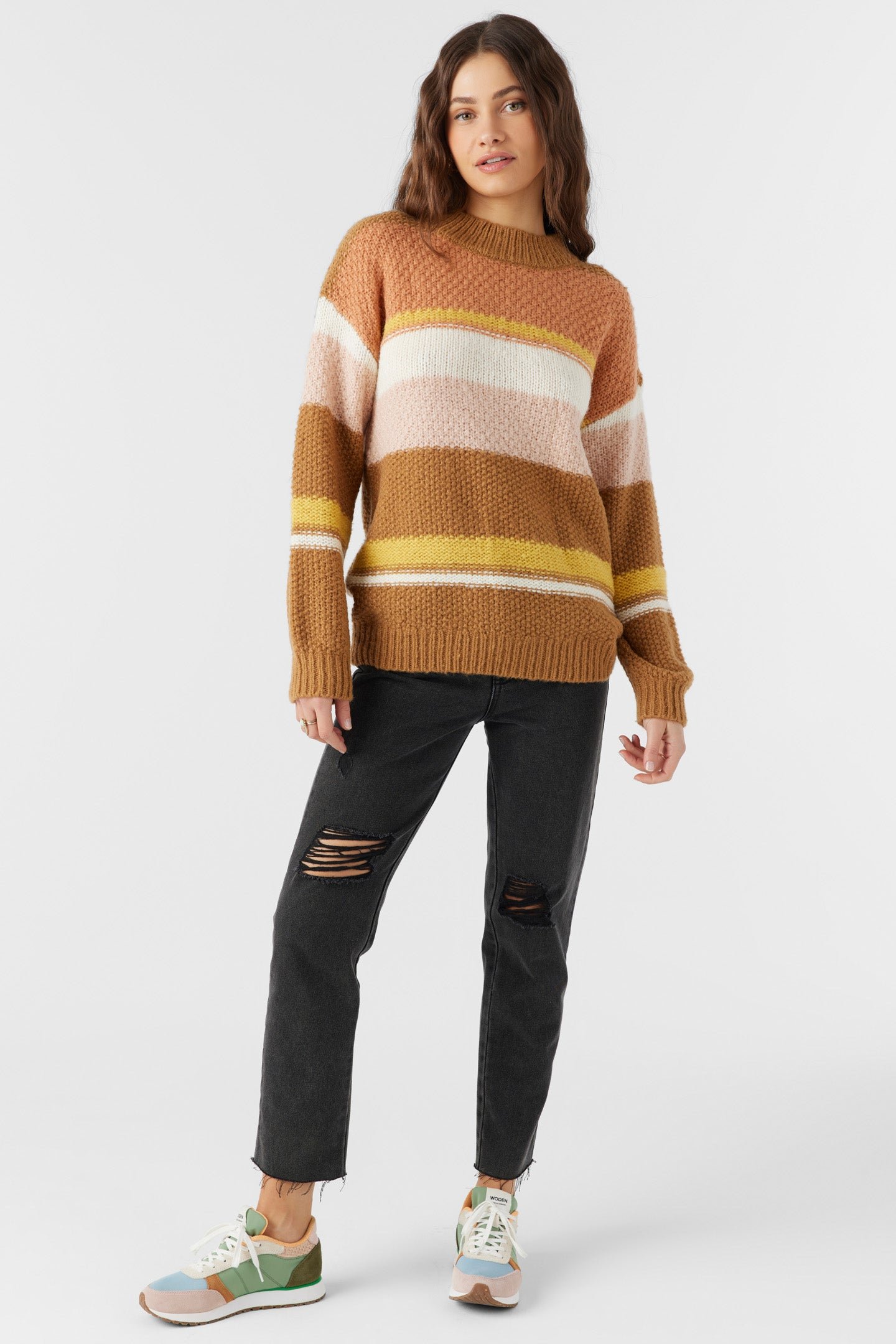 Long sleeve knit sweater that has a mock neck design and premium acrylic yarn feel.