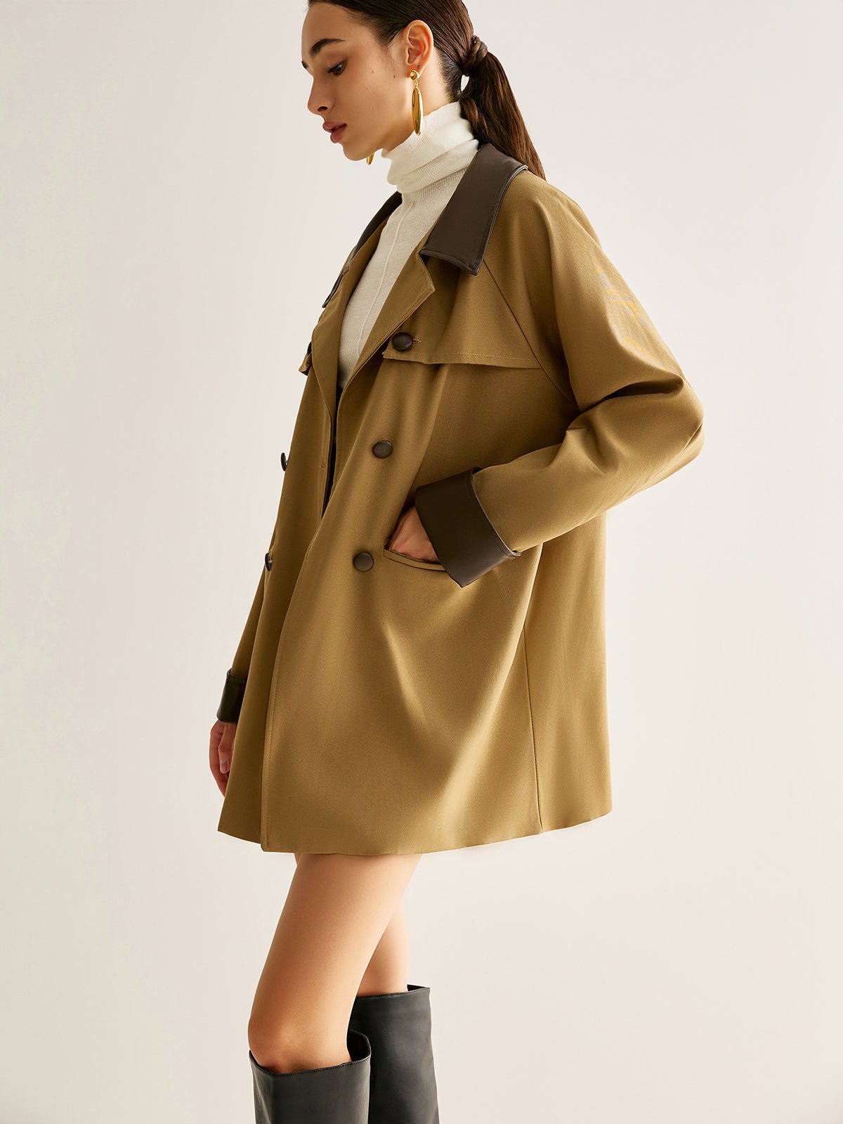 Be the first to review “Contrast Binding Button Trench Coat”